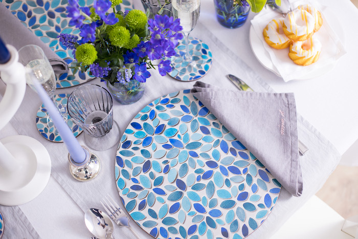 It was important to source high quality manufacturers in order to maintain the hand created details of my work. I also take great pride knowing that the materials and process used is sustainable. NINA D first launched with a capsule collection of placemats and coasters, before producing the designs on Swedish birch trays. To complete the range, handmade table linen in matching colours was introduced.