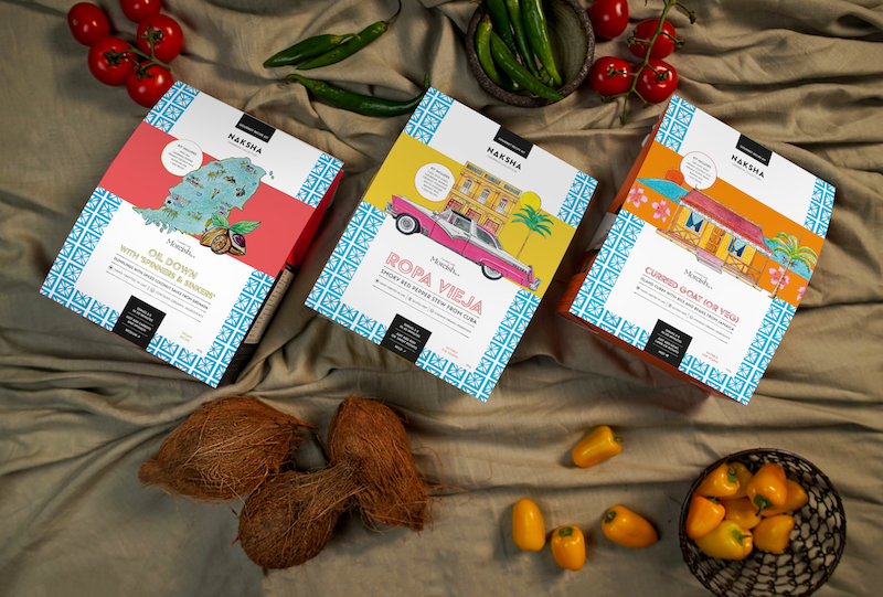 The word Naksha represents our products by alluding, first, to the concept of guidance and direction (which is relevant to recipe kits) and second, to the ideas of travel and geography, which reflect the way we curate kits into country-based or regional collections. The thesis is that by cooking with Naksha kits, users will discover new and exciting food experiences, just as they might explore new landscapes with the aid of a map.