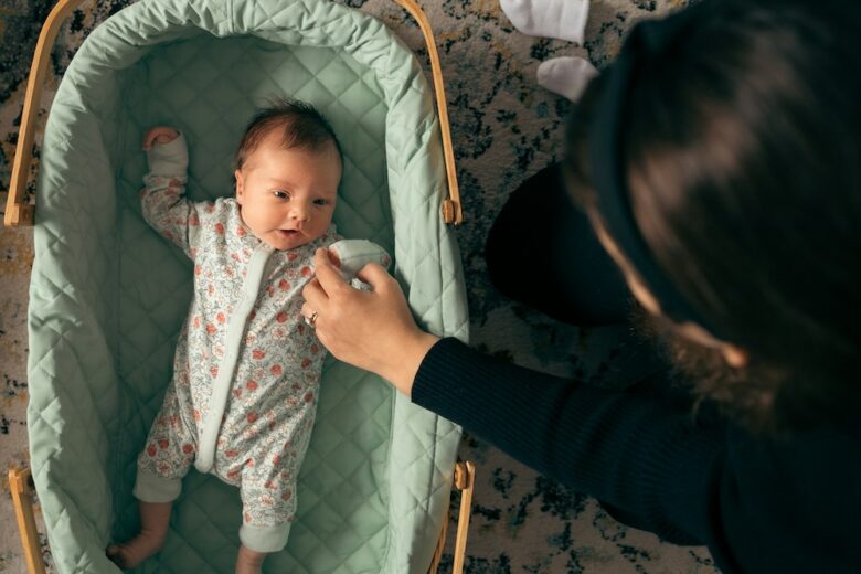Keep your newborn’s cot or Moses basket in your bedroom for the first few months so you don’t have to fully wake up to tend to them. The closer the baby is kept to you at night, the easier it will be to give quick feedings and soothe them back to sleep. Minimal travel distance helps minimise disruption. For Your Little One offers a range of Moses baskets that provide a cozy and safe sleeping space for newborns, making nighttime care easier.