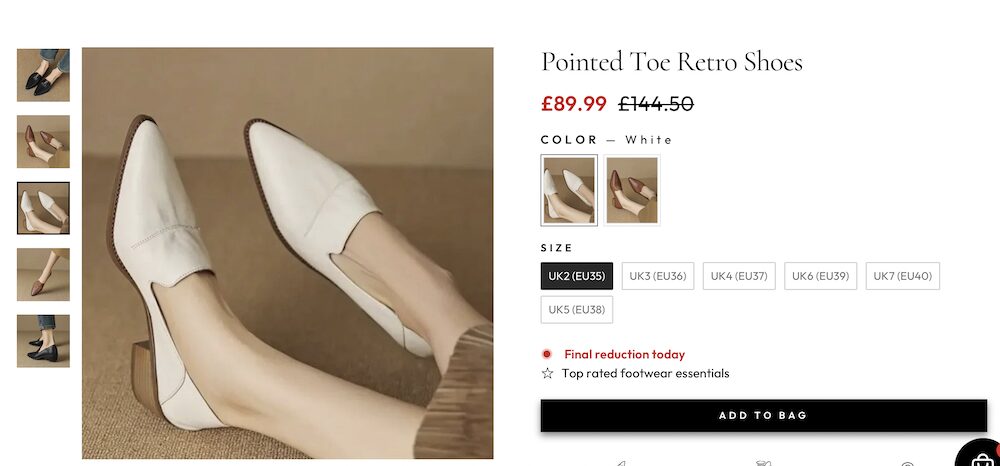 The truth? Products like these shoes, which are reduced from £144.50 to £89.99: