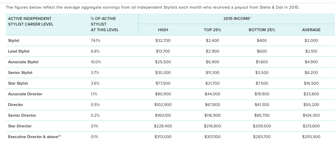 And remember, the figures in the table appear to be a best case scenario – only factoring reps who made any money. According to Stella&Dot themselves: