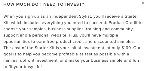 And this image is an FAQ from their former website. Note the line “Other Stylists treat this as an opportunity like a full-time career and are building a six-figure income in the process”: