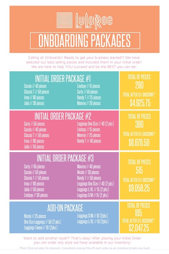 So if you did want to join LuLaRoe and become a ‘consultant’ (as they call their reps), what kind of investment are you looking at? To begin with, you have your initial set up costs. These are unavoidable if you want to become a LuLaRoe consultant.