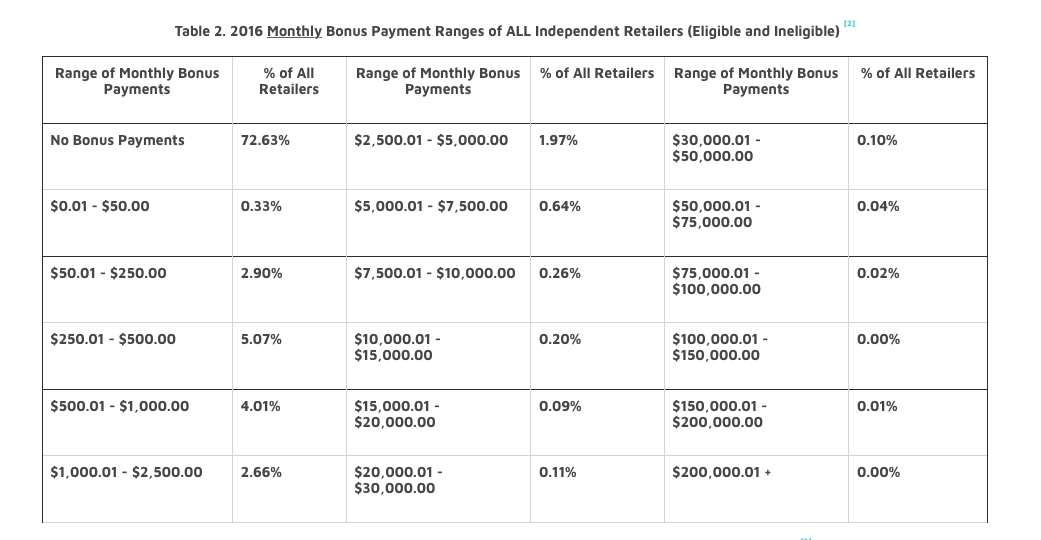 And even if that were the case, if the people being recruited as just consultants were ordering (and therefore selling) enough each month, their sponsors would qualify for the bonus payments. Which means we’d still see more than 27% of consultants receiving any bonus payments in the space of a year we believe.