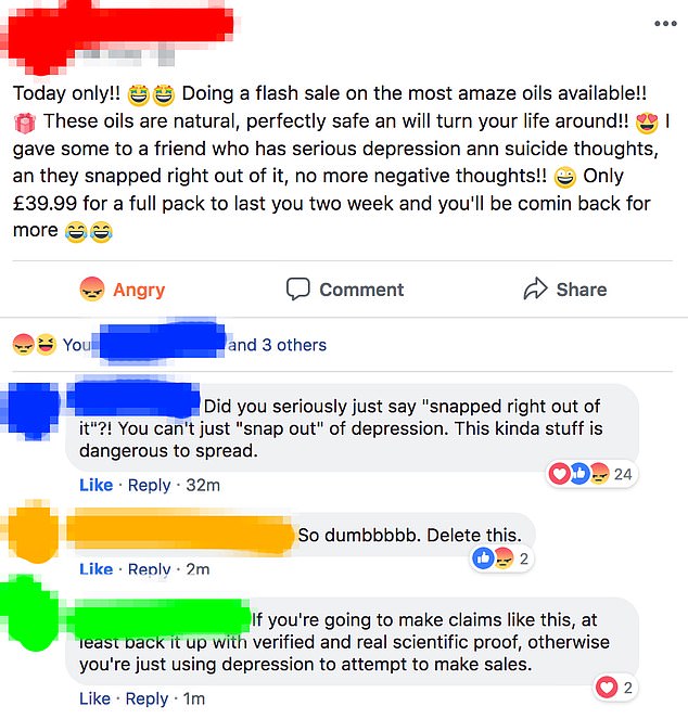 This appears to have been taken to heart by Young Living reps like this one, whose friend apparently ‘snapped right out’ of their suicidal thoughts after a sniff of their oils: