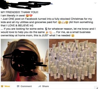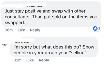 So the next time you see an MLM rep offering a free weight loss challenge, running a promotion on products or promoting an income opportunity, and you see replies saying things like, “I’m in!” just check out the profiles of the people replying and see how many are already selling the products themselves.