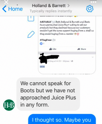 (You can also see the charming rep’s response to the person who revealed their lie in the comments too. Great reflection on the Herbalife brand!)