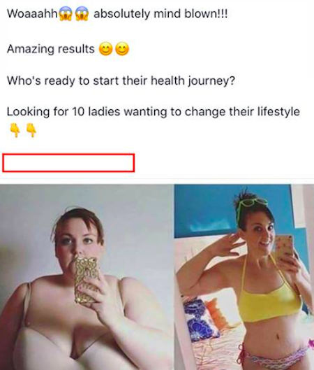 What bigger incentive to sign up for a weight loss product than to see someone who has achieved incredible results from it? But what if you don’t have any photos of your own or your clients to share? In the case of some Juice Plus+ reps, the answer seems to be to blatantly steal photos.