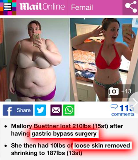 And here’s the true source of these photos. A story in the Daily Mail about a woman losing weight through gastric bypass surgery (not Juice Plus+):