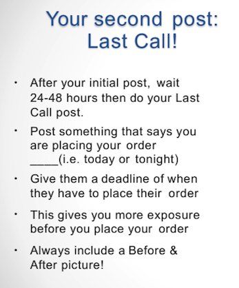 My upline said if it looks like I’m getting lots of orders, people would be more likely to order from me. It never worked for me and I didn’t like doing them as I didn’t agree with the fake it ’til you make it approach.”