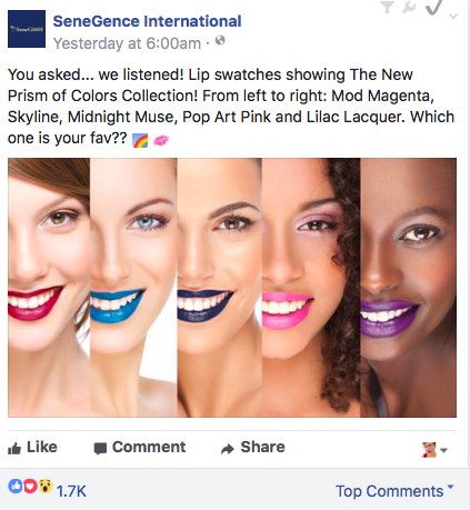 It’s not just MLM reps who are fond of ‘borrowing’ and faking photos. MLM SeneGence is a serial offender, as the website Crownless Princesses reveals. In this instance, SeneGence appeared to borrow this photo from cosmetic brand Mahya:
