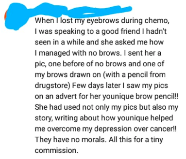 And here’s an example of a Youique rep apparently using the story and photo of a cancer survivor to try to hawk her products: