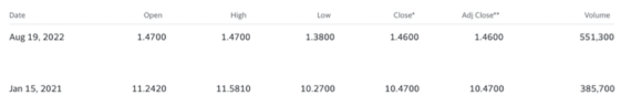 In January 2021, the opening share price for MLM Beachbody was $11.24. Just 19 months later on 19 August it had plummeted to 1.47: